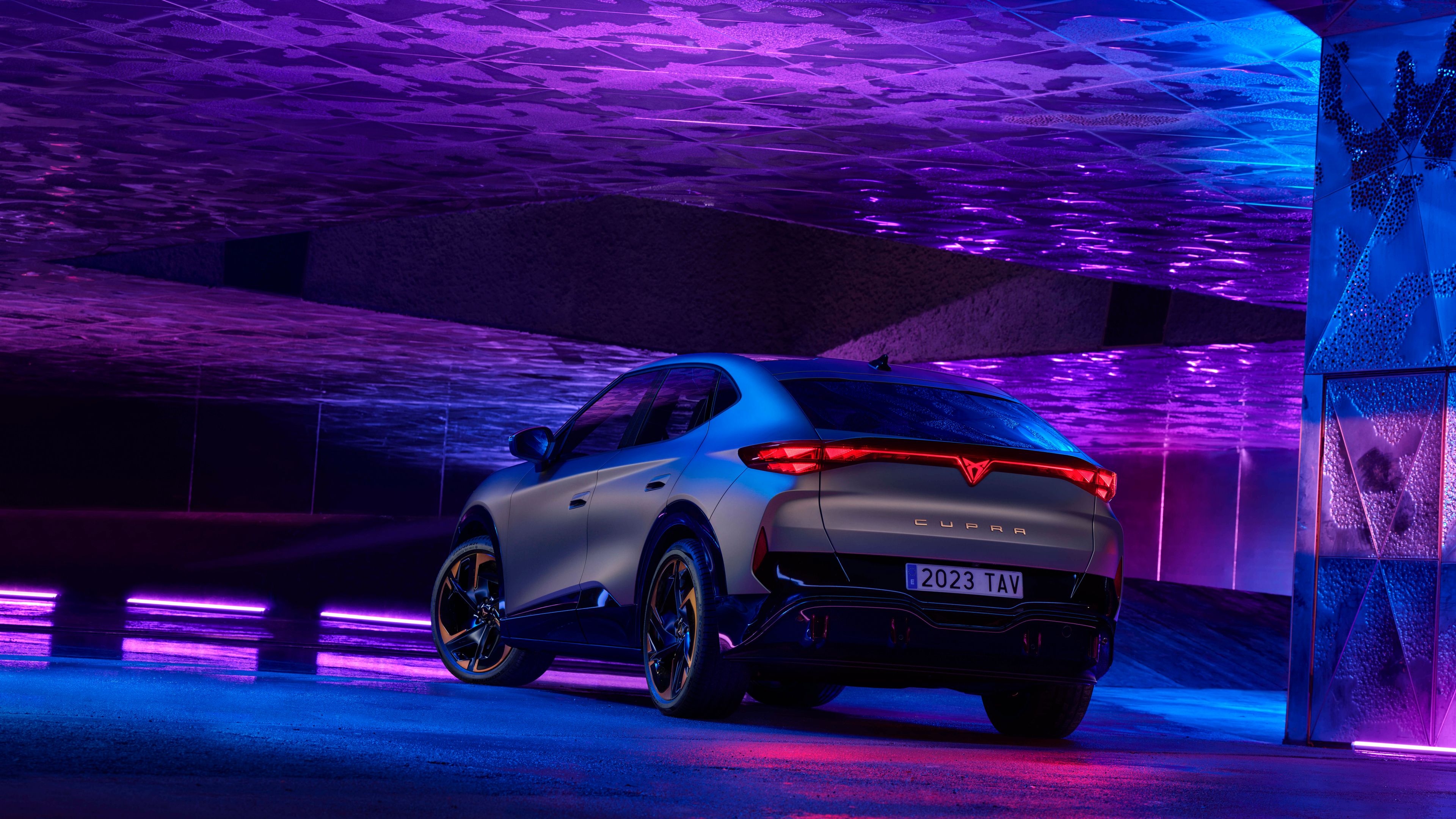 CUPRA Tavascan je znanilec novega, impresivnega oblikovalskega sloga: zunanji dizajn ima atletske, športne proporce. Ob pogledu od spredaj takoj pade v oči značilni trojček trikotnikov v vsakem od obeh matričnih LED-žarometov. Notranjost je prava arhitekturna umetnina, k čemur prispeva unikatna osrednja hrbtenica skupaj z ozkimi, skoraj nevidnimi prezračevalnimi šobami.